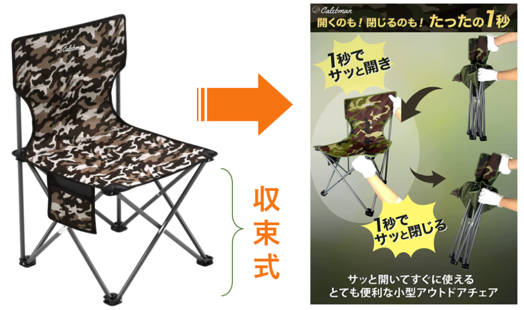 キャンプなどのアウトドア用に設計された、チェアのこと。