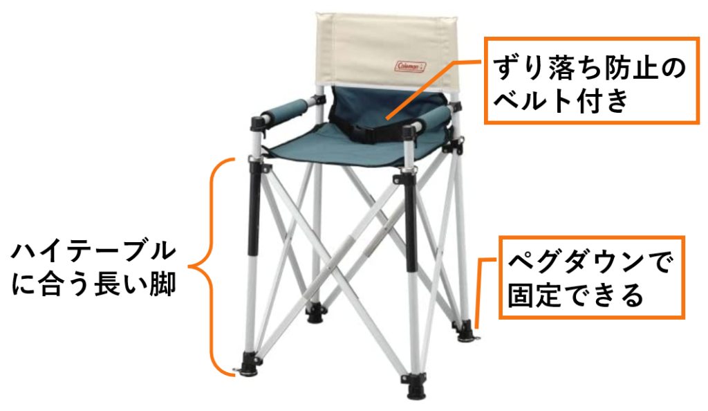 大人用に比べて収束式の脚が長くなっていて、ハイテーブルに向って子どもが座った時にもちょうどいい高さになってます。